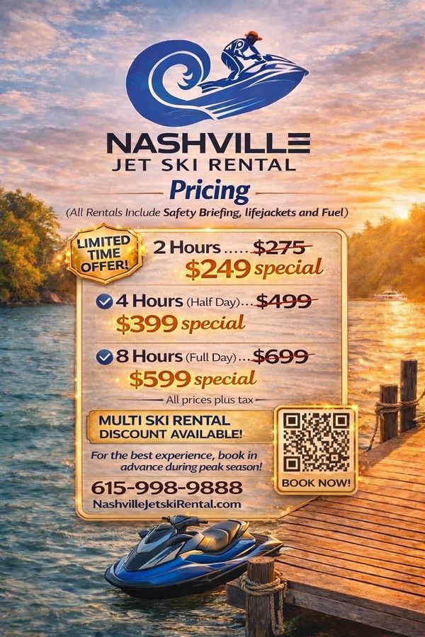 Nashville Jetski Rental is your one-stop source for all your PWC needs. We are dedicated to providing you with the best possible service and support to help you make the most of your Jetski experience. Whether you're a seasoned boater or just starting out, we have everything you need to get out on the water and enjoy the thrill of boating. So come on board and discover the joy of boating with Nashville Jetski Rental today!